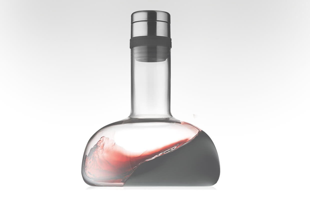 Kształtem karafka przypomina laboratoryjne naczynie, co doskonale oddaje precyzję, z jaką została wykonana. Dekanter Menu wyposażony jest w korek z lejkiem tak wyprofilowanym, by bezpiecznie przelać wino do karafki, nie rozlewając ani kropli. Szyjka karafki szczelnie przywiera do butelki, umożliwiając swobodne przelewanie trunku w obu kierunkach.