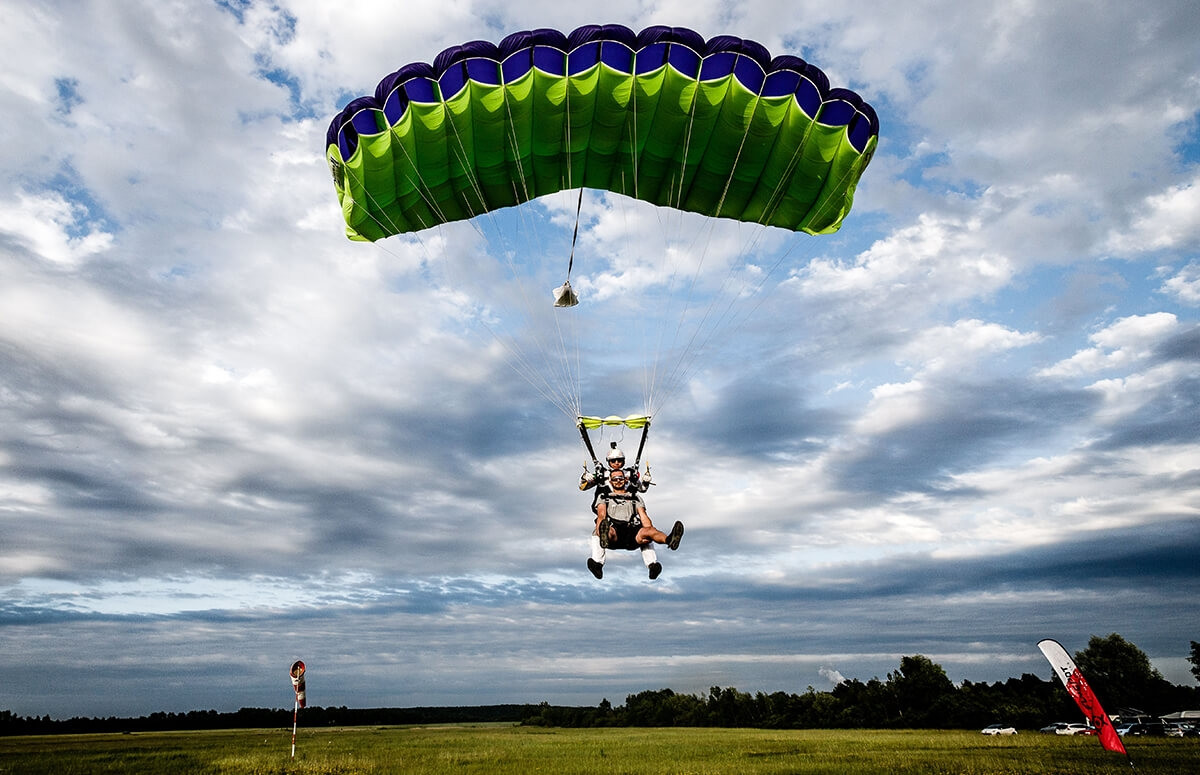 - Skok ze spadochronem w towarzystwie doświadczonego instruktora