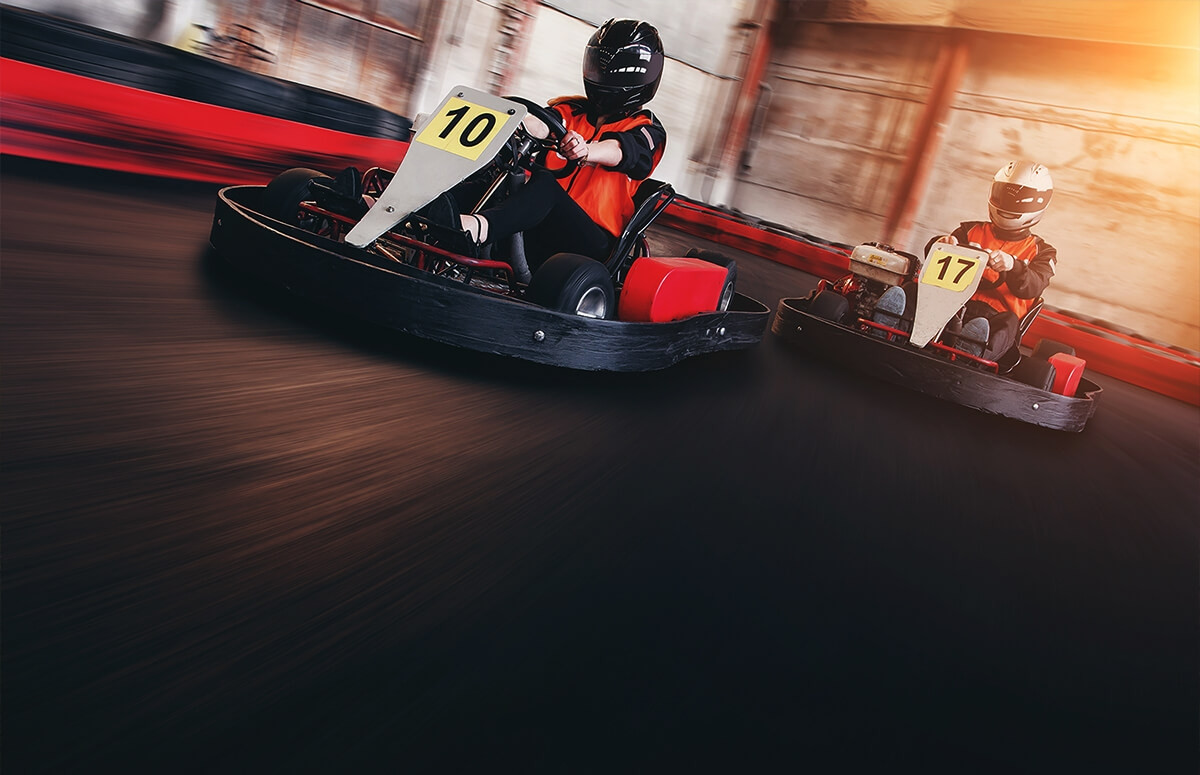 - Dwa osobne gokarty, ciekawy układ toru, nowoczesna hala i świetna zabawa we dwoje.